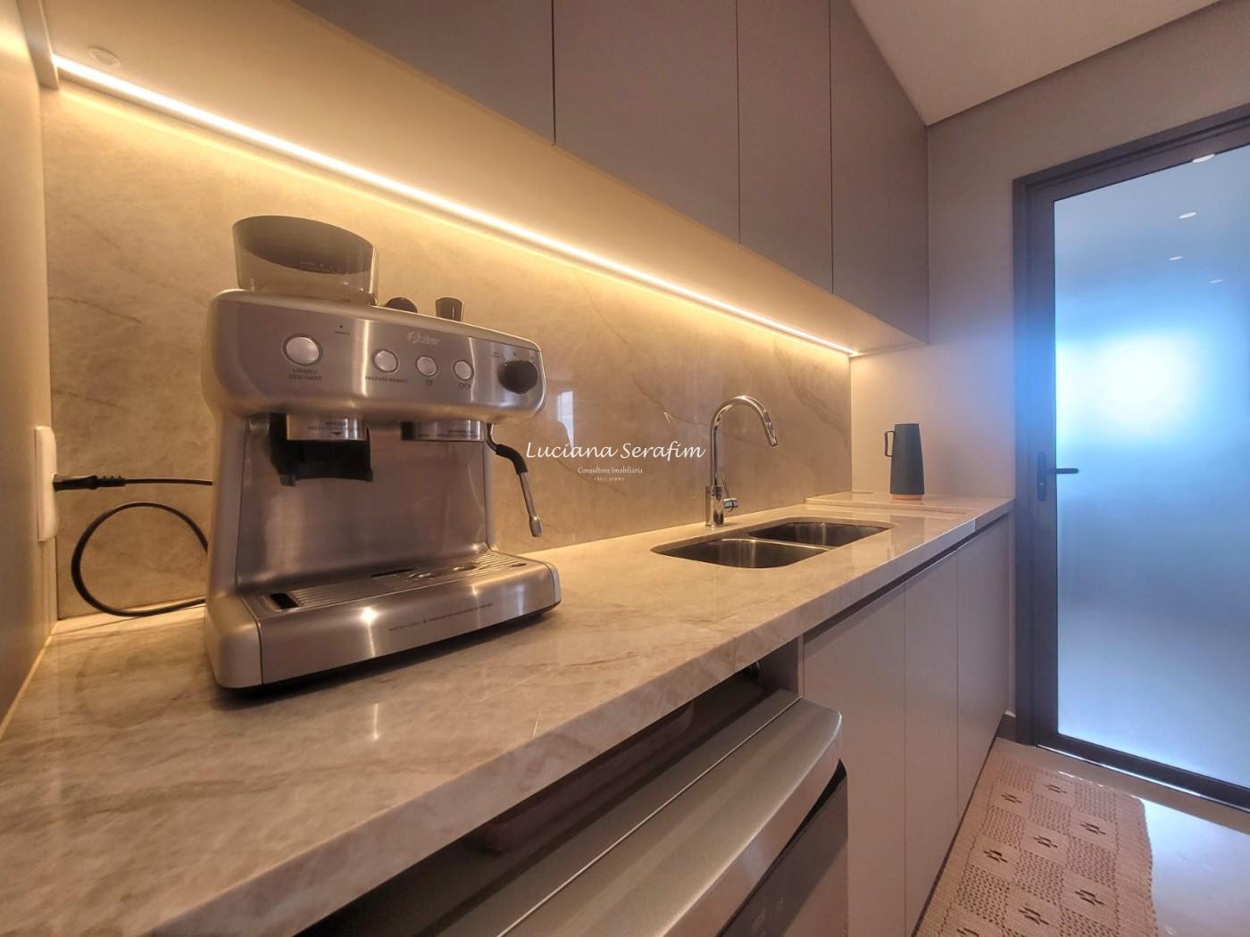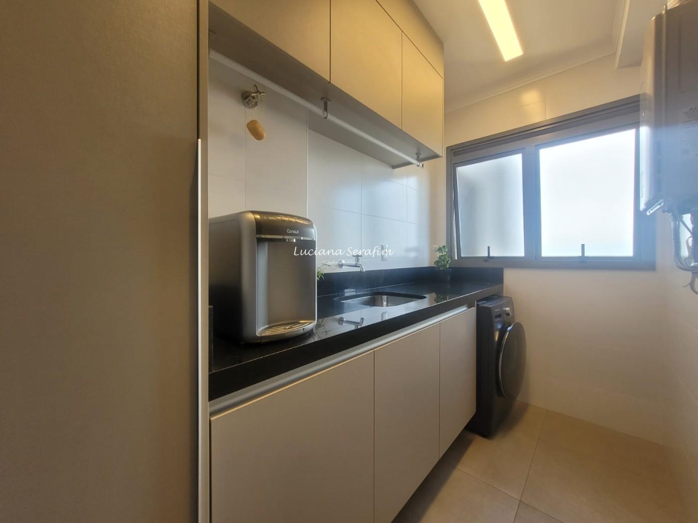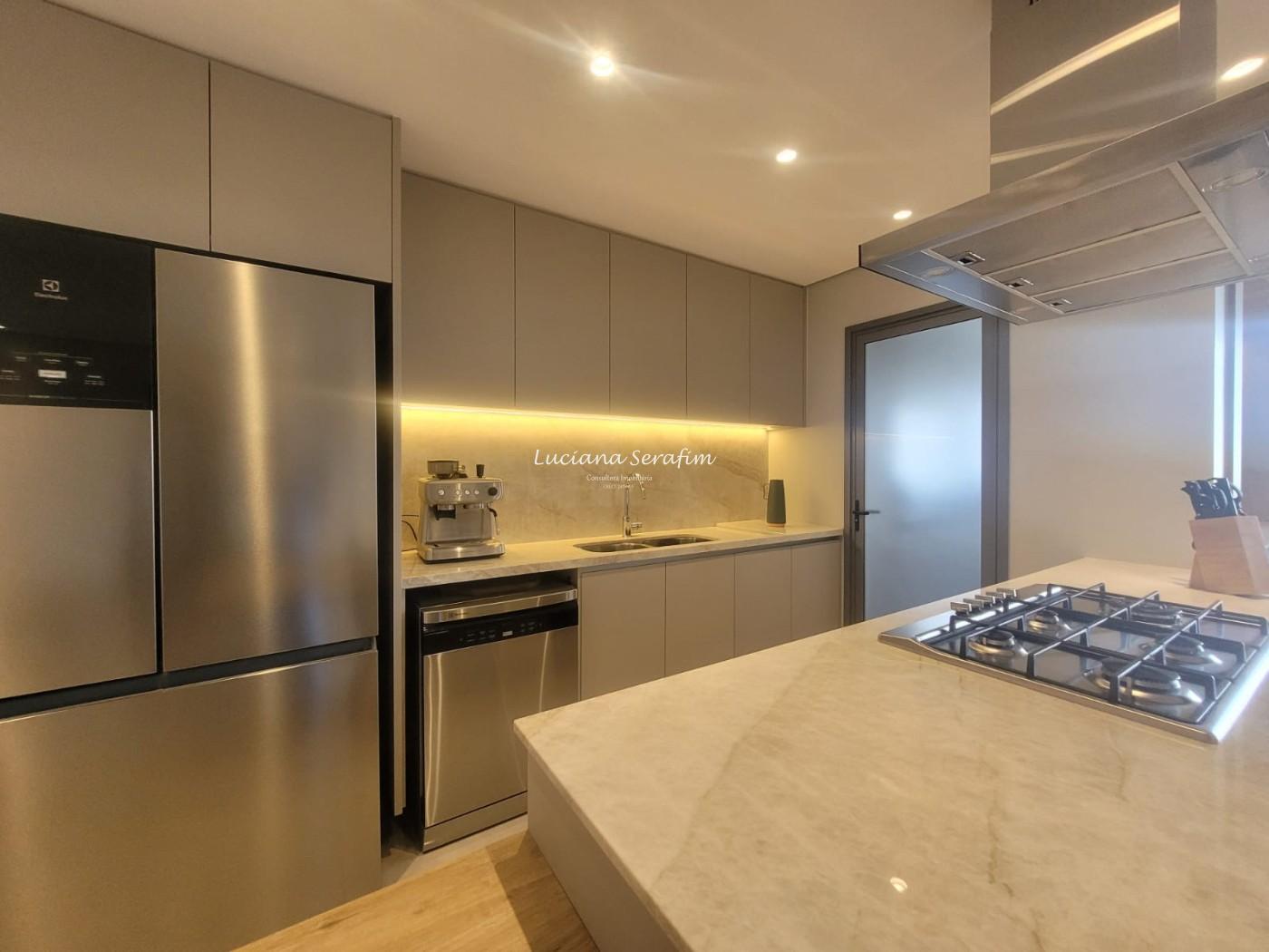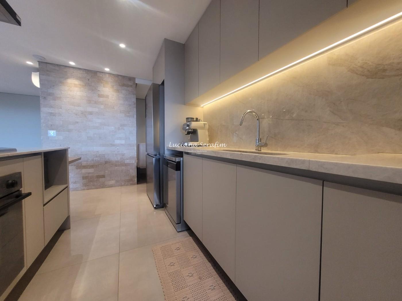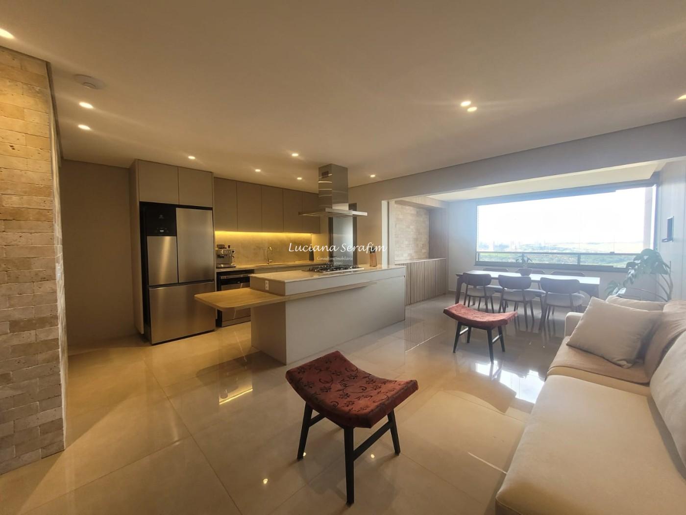 Com 03 suítes espaçosas, todas climatizadas com ar-condicionado e equipadas com móveis planejados, o imóvel possui conceito integrado onde sala de estar e sala de jantar integradas à cozinha gourmet se torna perfeita para receber amigos e familiares. De fino acabamento, com bancadas em quartzo Taj Mahal, parede em pedra natural no travertino, alem de fina marcenaria. A cozinha é equipada com 02 cubas, agua quente na torneira, triturador, exaustor potente, cooktop. Os banheiros possuem duchas com aquecimento a gás, box, louças de primeira linha, além de fino espelho com iluminacao embutida para o conforto no dia a dia! A vista é livre e deslumbrante e sua posição é face sombra.