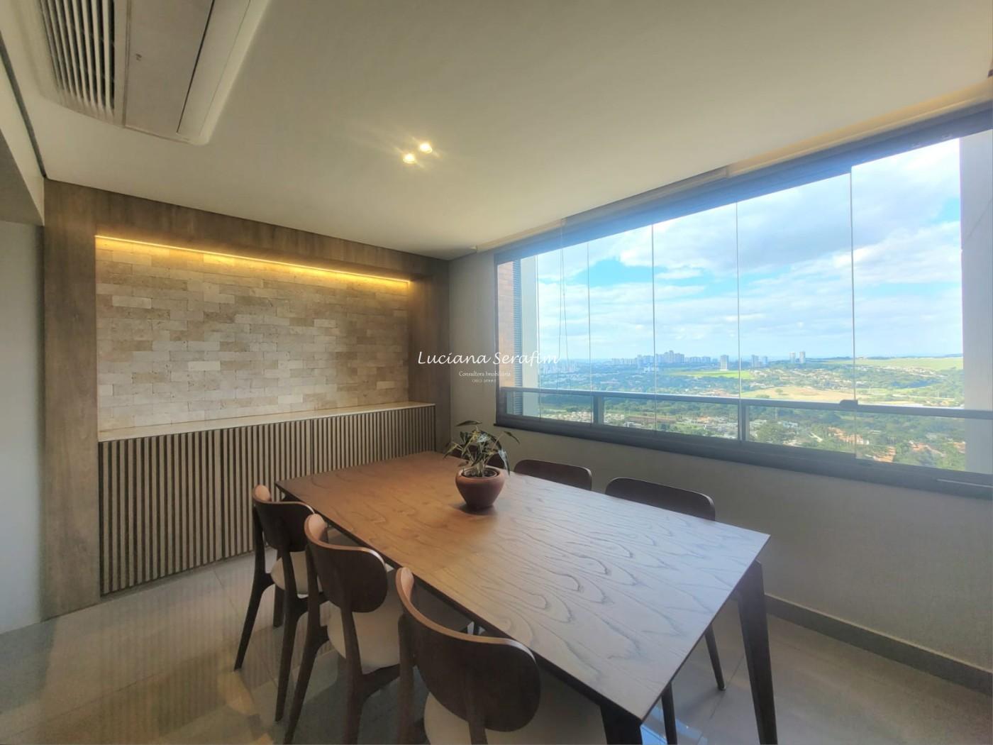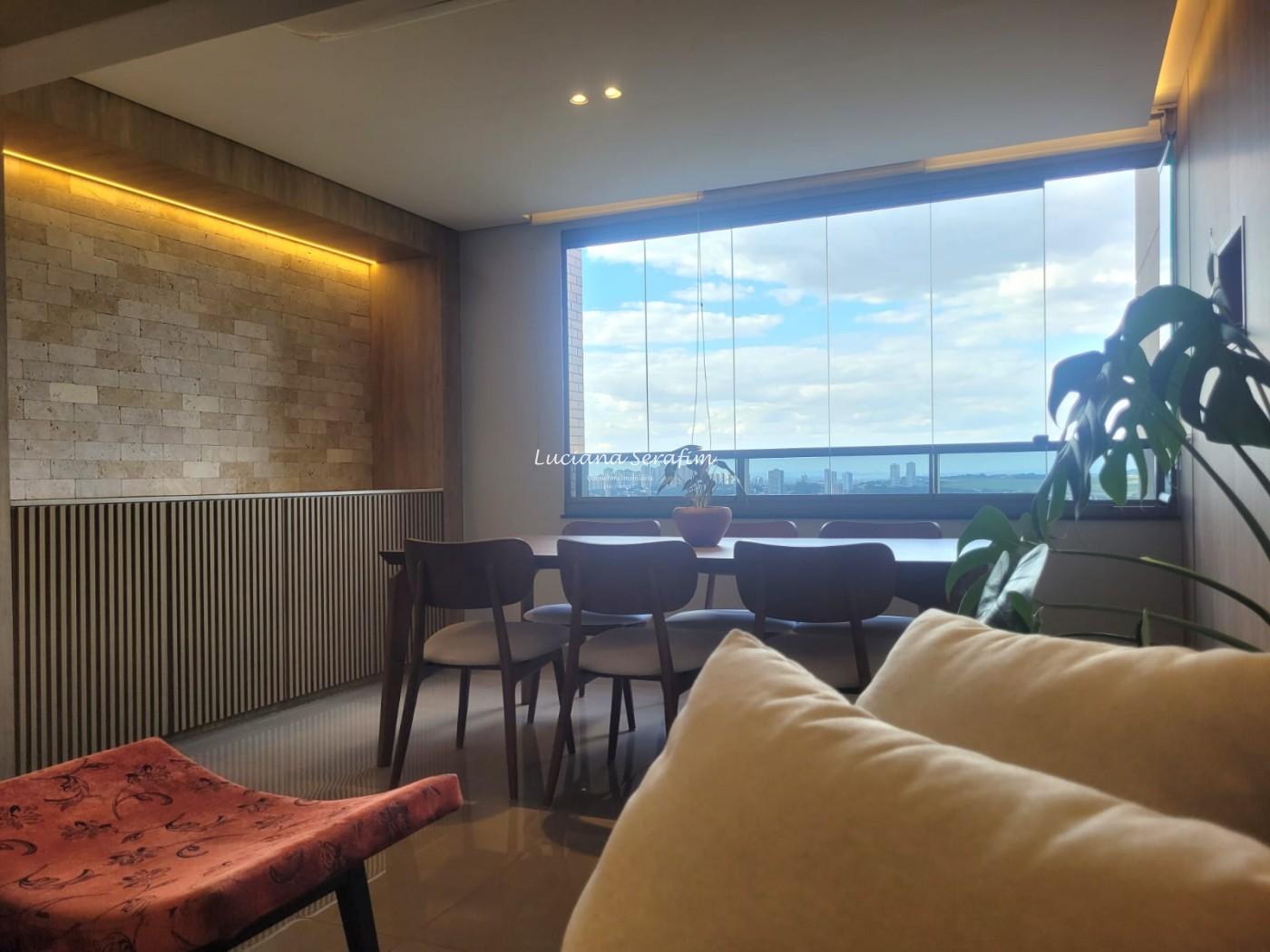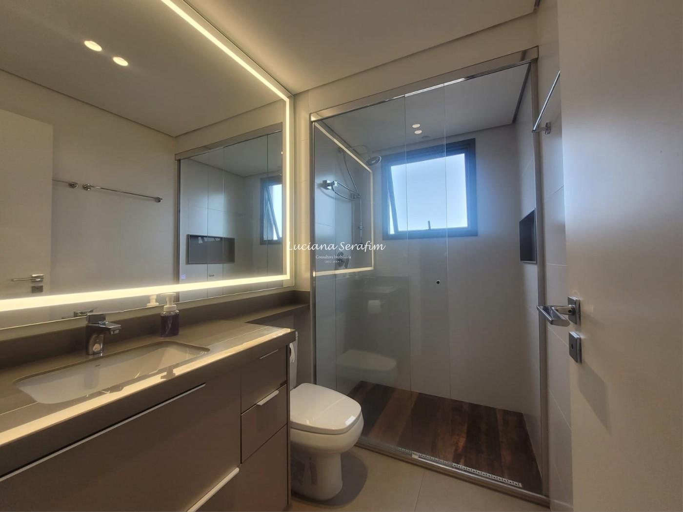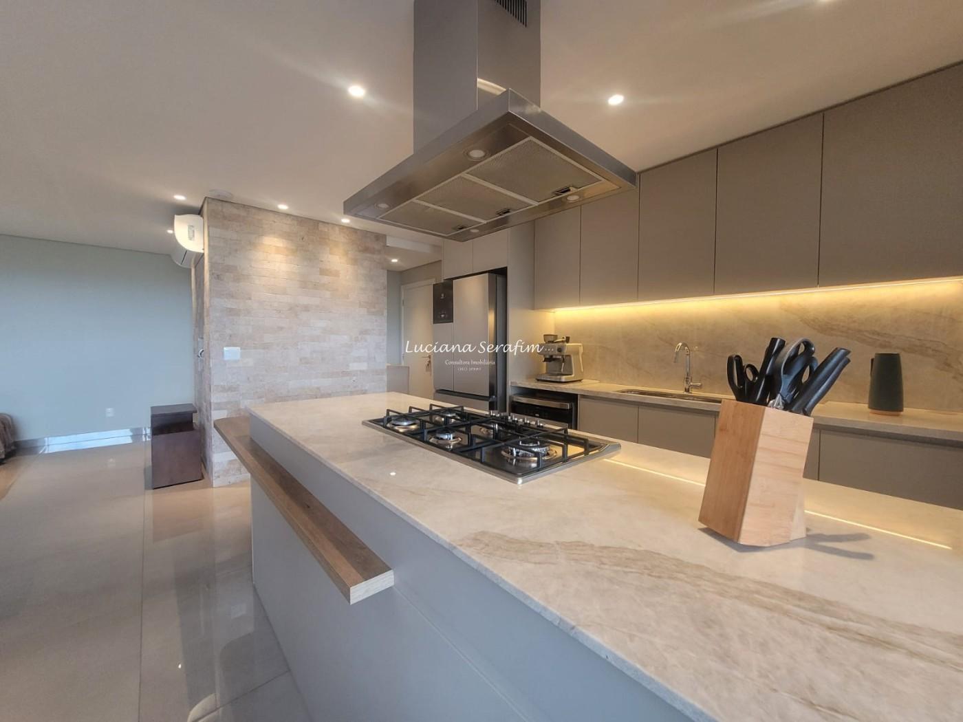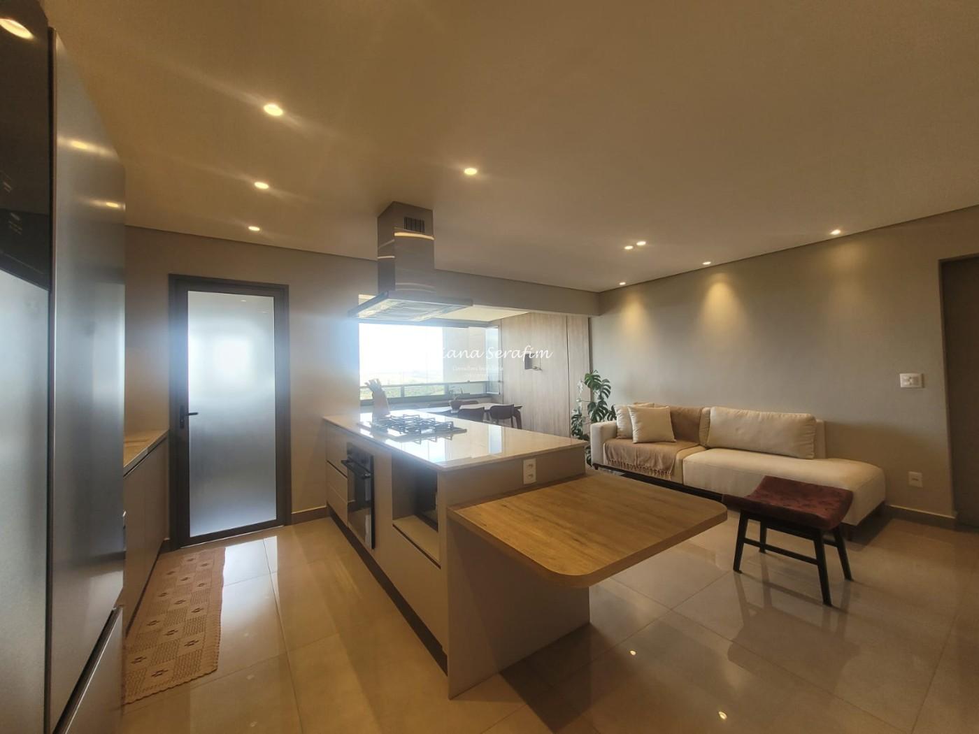 Com 03 suítes espaçosas, todas climatizadas com ar-condicionado e equipadas com móveis planejados, o imóvel possui conceito integrado onde sala de estar e sala de jantar integradas à cozinha gourmet se torna perfeita para receber amigos e familiares. De fino acabamento, com bancadas em quartzo Taj Mahal, parede em pedra natural no travertino, alem de fina marcenaria. A cozinha é equipada com 02 cubas, agua quente na torneira, triturador, exaustor potente, cooktop. Os banheiros possuem duchas com aquecimento a gás, box, louças de primeira linha, além de fino espelho com iluminacao embutida para o conforto no dia a dia! A vista é livre e deslumbrante e sua posição é face sombra.