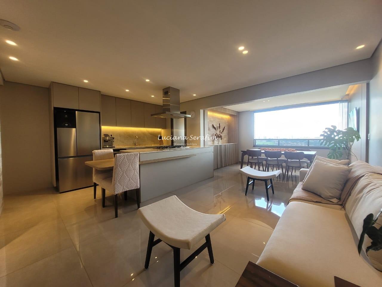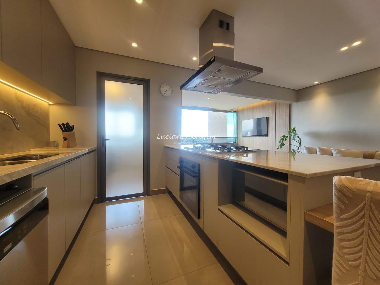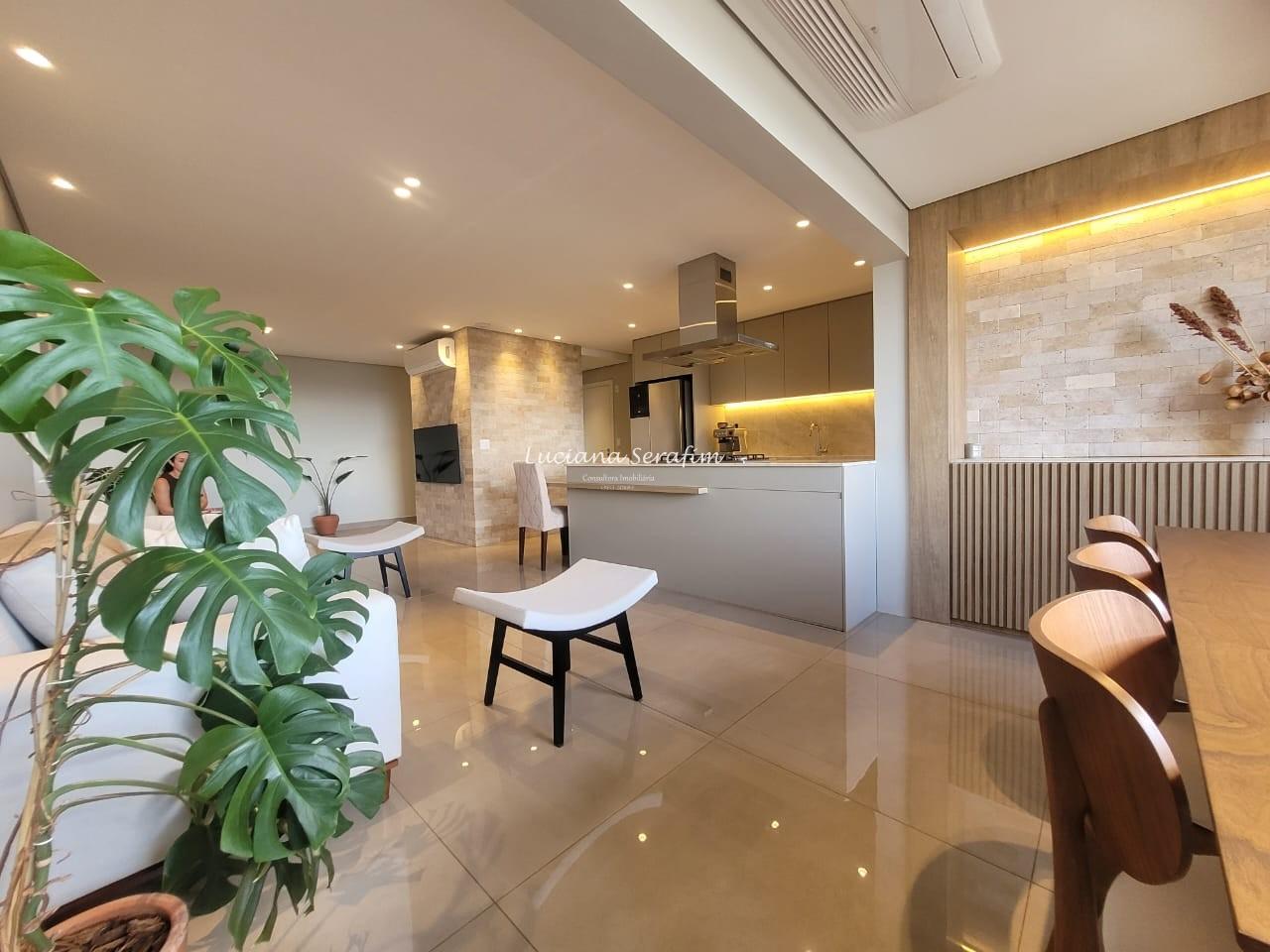 Com 03 suítes espaçosas, todas climatizadas com ar-condicionado e equipadas com móveis planejados, o imóvel possui conceito integrado onde sala de estar e sala de jantar integradas à cozinha gourmet se torna perfeita para receber amigos e familiares. De fino acabamento, com bancadas em quartzo Taj Mahal, parede em pedra natural no travertino, alem de fina marcenaria. A cozinha é equipada com 02 cubas, agua quente na torneira, triturador, exaustor potente, cooktop. Os banheiros possuem duchas com aquecimento a gás, box, louças de primeira linha, além de fino espelho com iluminacao embutida para o conforto no dia a dia! A vista é livre e deslumbrante e sua posição é face sombra.