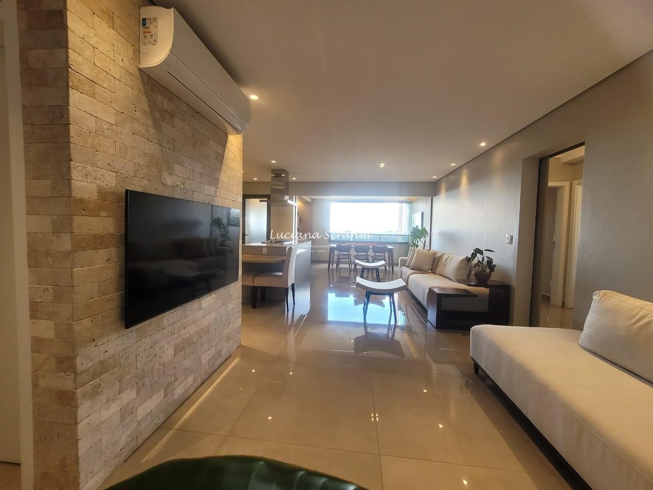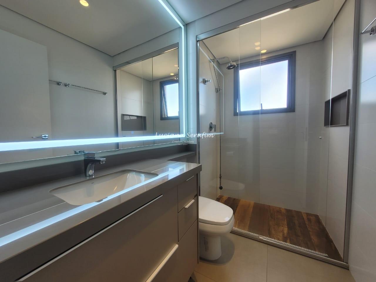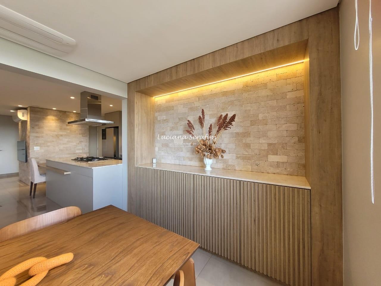 Com 03 suítes espaçosas, todas climatizadas com ar-condicionado e equipadas com móveis planejados, o imóvel possui conceito integrado onde sala de estar e sala de jantar integradas à cozinha gourmet se torna perfeita para receber amigos e familiares. De fino acabamento, com bancadas em quartzo Taj Mahal, parede em pedra natural no travertino, alem de fina marcenaria. A cozinha é equipada com 02 cubas, agua quente na torneira, triturador, exaustor potente, cooktop. Os banheiros possuem duchas com aquecimento a gás, box, louças de primeira linha, além de fino espelho com iluminacao embutida para o conforto no dia a dia! A vista é livre e deslumbrante e sua posição é face sombra.